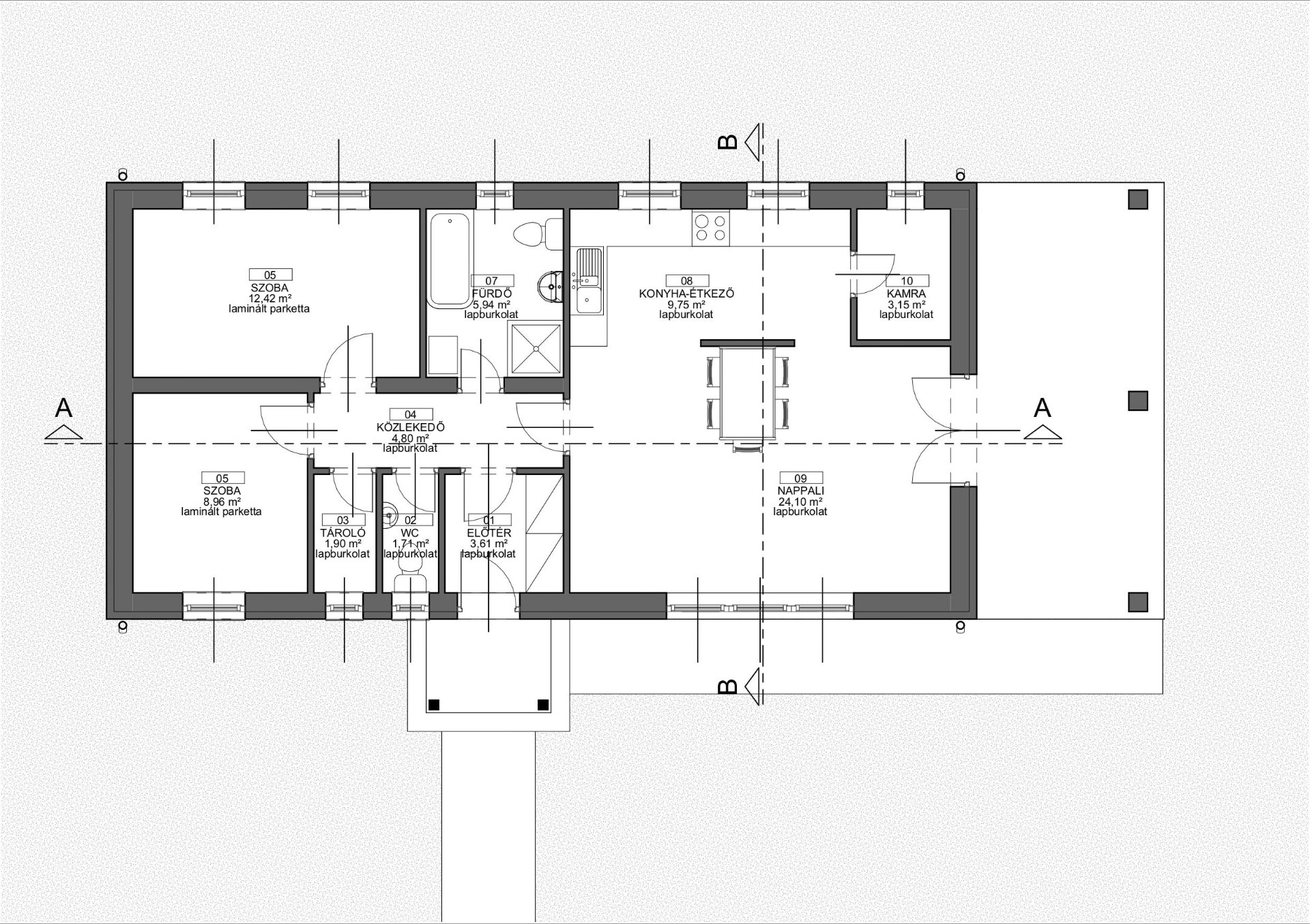 nagy, amerikai konyhás nappali, kamra, tároló, 2 szoba, konyha, fürdőszoba, terasz