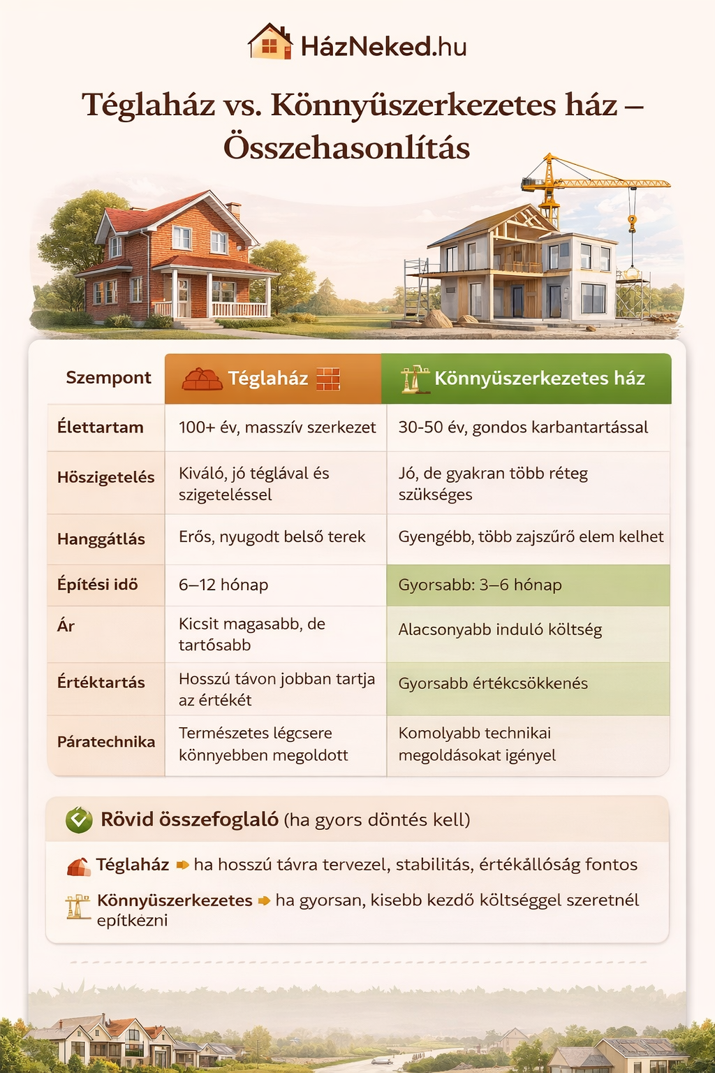 Tartósság: A téglaház több generációra szóló befektetés. Ha hosszú távra tervezel, ez fontos szempont lehet.